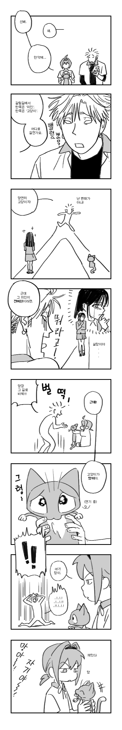 망이랑 냥이 그림체 너무 달라서 웃겨요 망이 점점 더 단순화 되고있어..(마스코트 같고 귀여워요.,.....