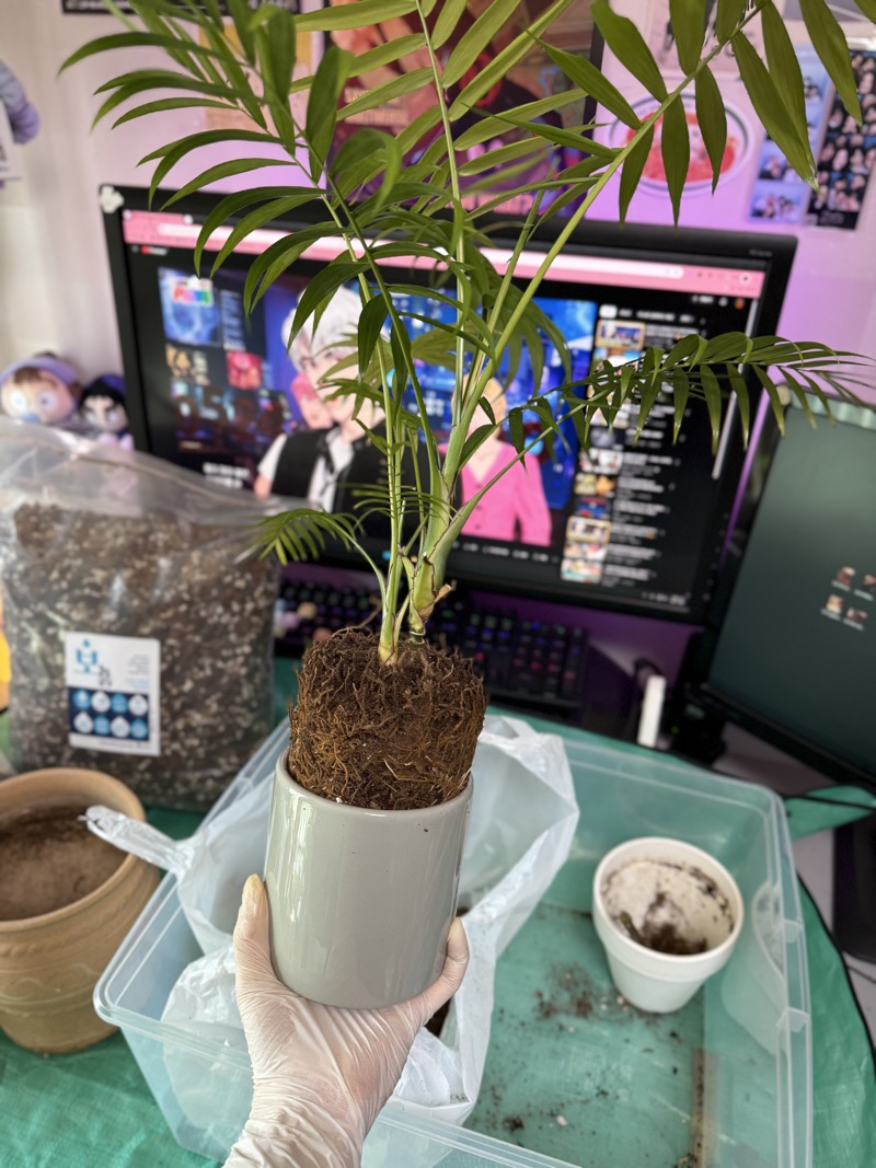 사진은 오늘 나의 속을 썩인 테이블야자ㅠㅠㅠㅠ 뿌리가 가득 찼을꺼라고 생각은 했지만 이렇게까지 흙은 하나도 없이 꽉 찼을줄은... 목대 부러질까봐 진짜 조마조마하면서 뺐다.... 큰 화분에 심었으니까 더 잘 커주겠지이...~?