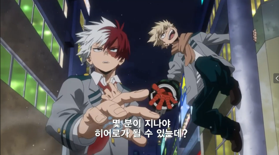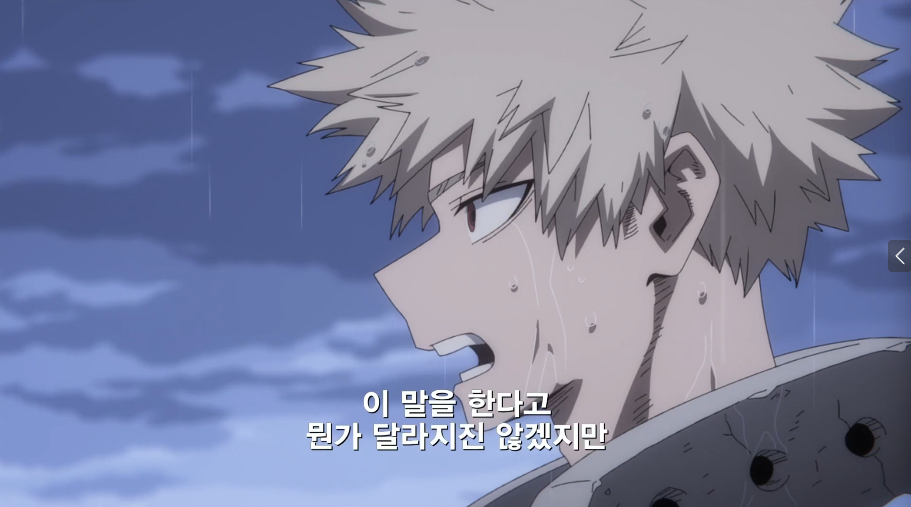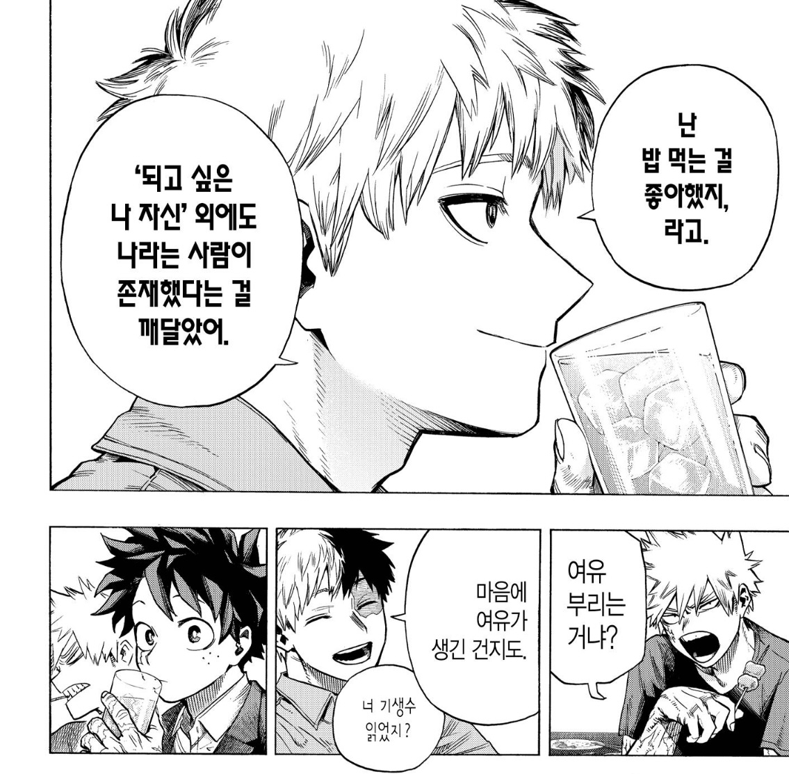 이 편 좋아서 여러번 보는데... 데쿠는 바쿠고를 싫어하는 만큼이나 대단하다고 말하는거 보면 그다지 좋아하지 않은걸까... 싶기도 하고~... 하긴 친해지고 싶었으면 뭔가 같이 하려고 했겠지?