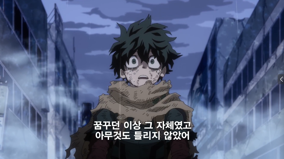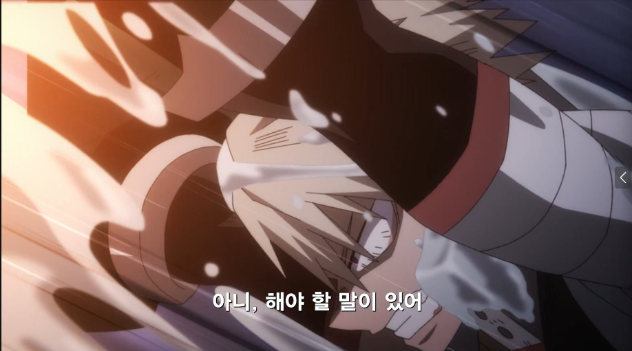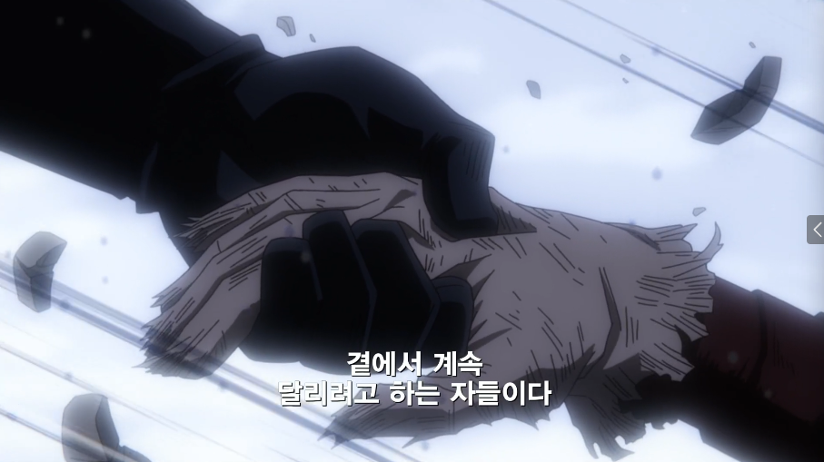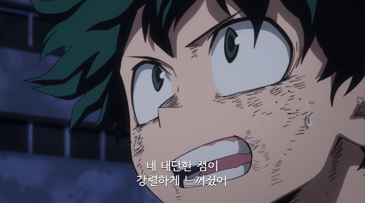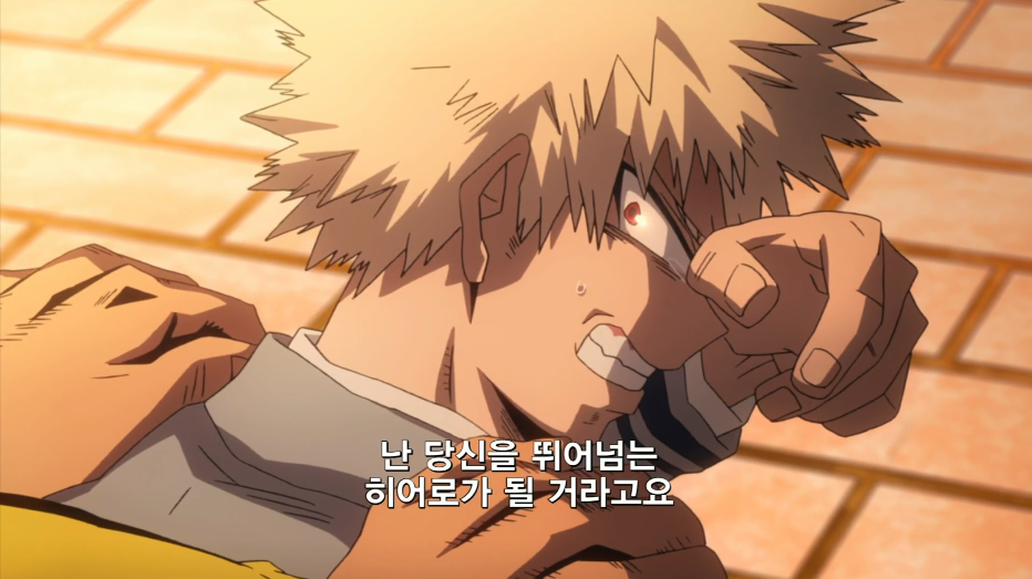 이 편은 진짜 성우분 연기도 최고였음 ㄱ-... 동경하는 사람의 후계자가 내가 아니라 항상 뒤쳐져 있고 모질게 대한 녀석이었는데 어느 순간인가 뒤를 바짝 쫓아오고 있었고... 그에 비해 나는 멈춰 있는 것 같고 심지어 피해를 주기까지 해버리는 절망한 감정을. . . 너므 잘 표현한 듯ㅠ 컹ㅠㅠㅠㅠㅠㅠㅠㅠ 데쿠가 그 감정을 받아줄 수 있는 건 본인뿐이라고 하는 것도 좋았음... 라이벌들아... 절차탁마해서 최고가 돼라 ㅠ