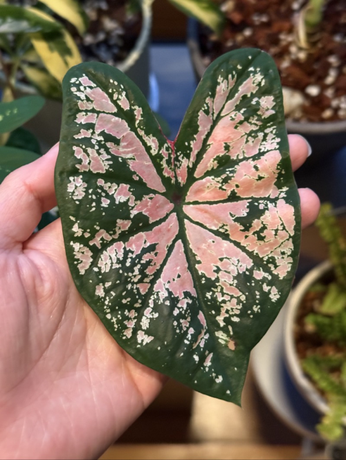 칼라디움 잎이 너무 예뻐서ㅎ... 색이 선명하게 붉은빛이 띄는게 너무 예쁘다ㅠ 신엽들이 속속들이 올라오고있다! 줄기가 긴 편인데... 이러다가 잎 사이즈도 어마어마하게 커지겠지!? 헉헉헉 기대된다+ comment